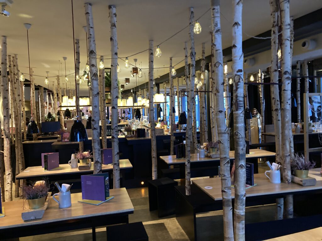 Kleine Rätselfrage: Im Spiegel links im Bild spiegelt sich der Name des Restaurants, dessen Schriftzug sich auf dem gegenüberliegenden Fenster befindet. Warum ist der Name nicht in Spiegelschrift zu sehen?