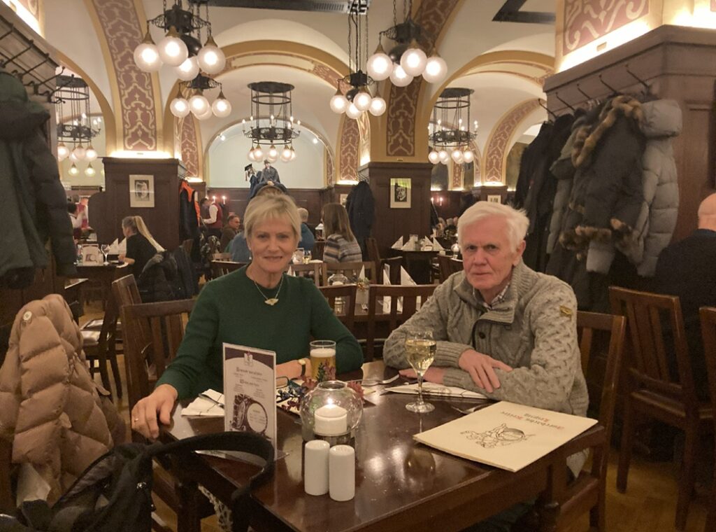 Für den Abend haben wir in Auerbachs Keller einen Tisch reserviert, der berühmten Gaststätte, in der Goethe eine Szene seines Faust I stattfinden lässt. Es handelt sich um einen weiträumigen Gewölbekeller, in dem vor allem gutbürgerliche, sächsische Küche serviert wird. Obwohl wir einen schönen Tisch zugewiesen bekommen, gefällt es uns hier nicht so gut wie gestern im „Weinstock“. Es ist ziemlich laut hier und die Portionen sind zu riesig.
