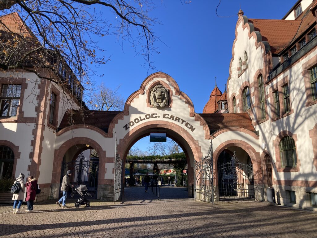 Der Zooeintritt ist uns zu teuer. Es soll 20 Euro pro Person kosten. Also marschieren wir in den Park. Wir sind inzwischen schon lange in der Eiseskälte unterwegs und spüren unseren Rücken. Für mich ist die Matratze im Hotel zu weich. Ich fürchte, kurz vor einem Hexenschuss zu stehen. Der Park bietet wieder herrliche Fotomotive. Leider geht mein Akkustand zur Neige und ich muss zu meinem Bedauern feststellen, dass ich die Powerbank im Hotel liegen gelassen habe. Bei der Suche danach in meinem Rucksack verliere ich auch noch unbemerkt einen meiner Handschuhe. Wenig später bricht ein Bügel von meiner Brille ab. Was für eine Serie von Missgeschicken! Ich lasse mir davon allerdings nicht die gute Laune verderben. Die Sonne glitzert auf dem kleinen See im Park und auch die Glasfenster zum Zoo zeigen spannende Fotomotive. Johannes überlässt mir zum Glück ohne Protest sein Handy zum Fotografieren.